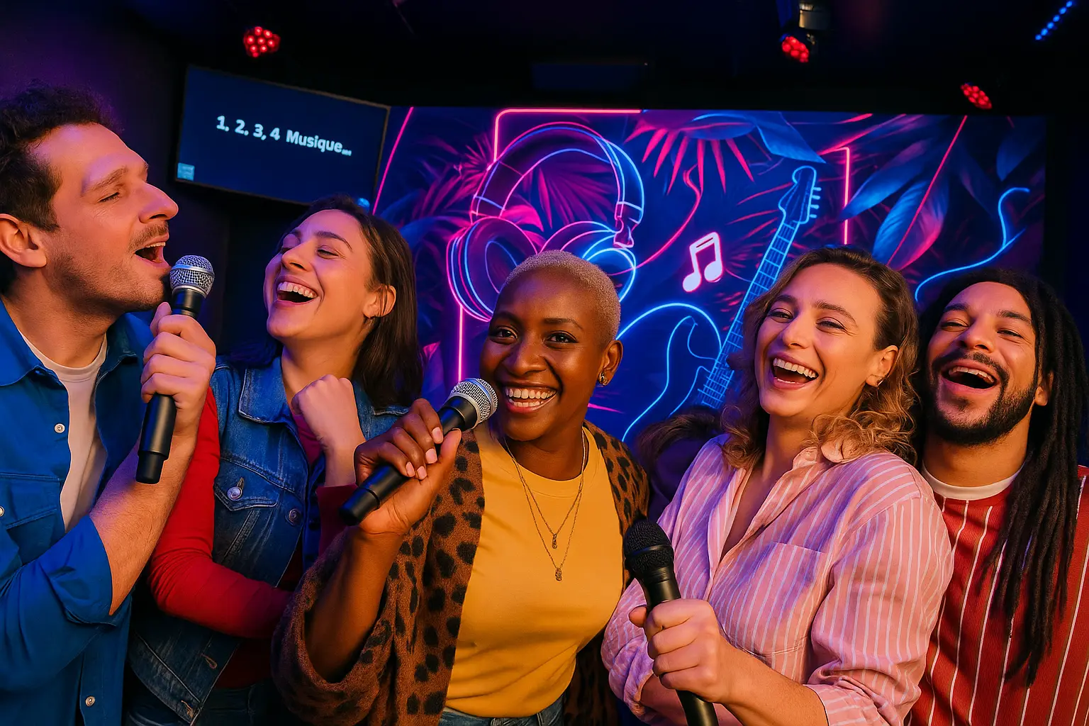 Nos box de karaoké privatisés à l’Étang-Salé sont parfaits pour vos soirées entre amis, en famille ou pour fêter un EVJF dans une ambiance fun et décomplexée.